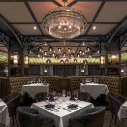 The ambiance reminds me of a chic modern Adam's family house. Very dark, white candles with wax burning and servers in suits- definitely one of the best steakhouses in Chicago for their exotic menu and classy touch. The servers know what to say when they are there but they are not that attentive which has been constant each visit. The food is amazing, pricey but very flavorful and enjoyable. Just learned about their happy hour which is a fun bonus and will be back for